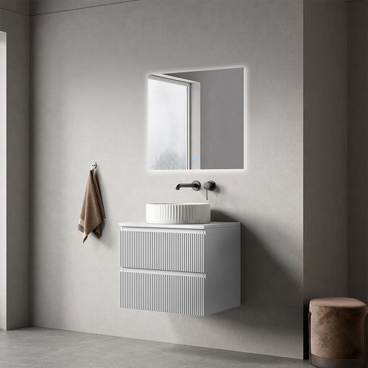 Mobile bagno sospeso cannettato 60 cm Bianco Opaco per Lavabo d'appoggio Specchio Quadro Retroilluminato - Fiji Paint Top Canneté