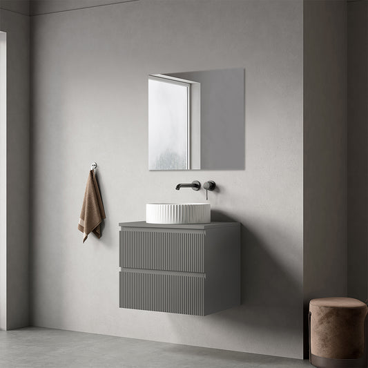 Mobile bagno sospeso cannettato 60 cm Grigio Cenere per Lavabo d'appoggio Specchio Quadro - Fiji Paint Top Canneté