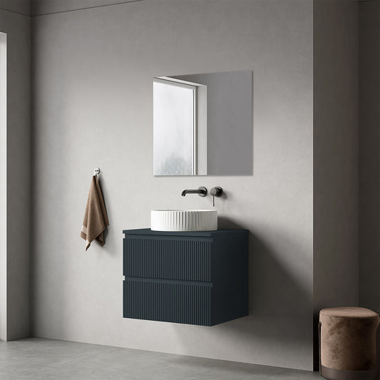 Mobile bagno sospeso cannettato 60 cm Blu Mare per Lavabo d'appoggio Specchio Quadro - Fiji Paint Top Canneté