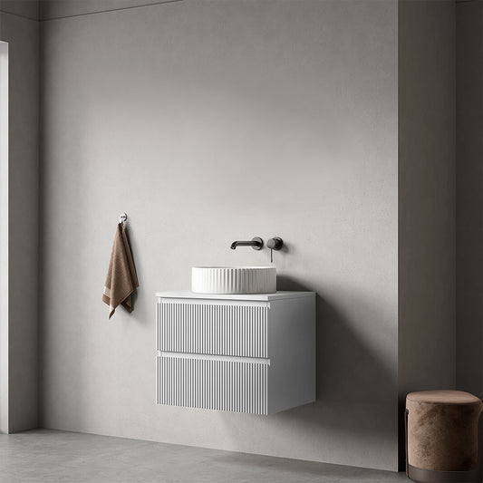 Mobile bagno sospeso cannettato 60 cm Bianco Opaco per Lavabo d'appoggio Senza Specchio - Fiji Paint Top Canneté