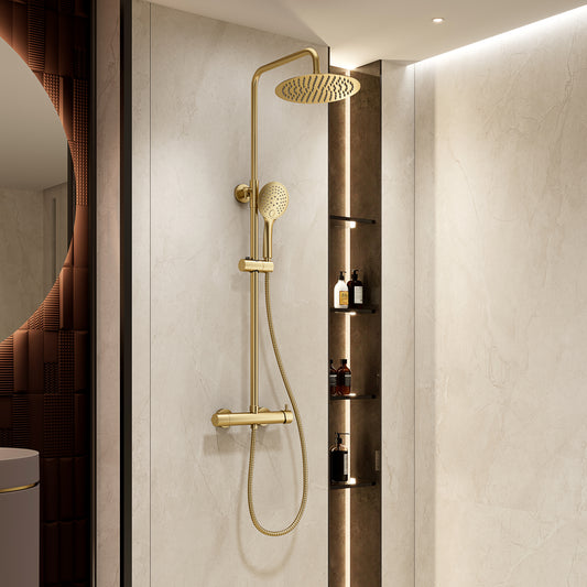 Colonna Doccia Termostatica con Doccino Oro Spazzolato - Luna