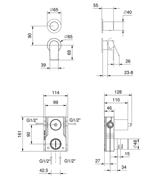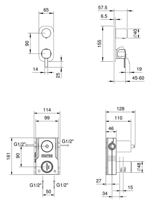 Miscelatore (solo parte incasso Universale) Doccia Universale - Fantini Rubinetti