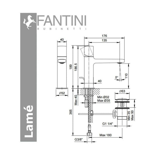 Miscelatore Lavabo Lamè Con Piletta - Fantini Rubinetti