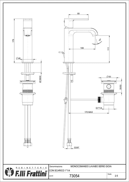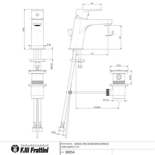 Miscelatore Lavabo Espresso Con Piletta - Fratelli Frattini