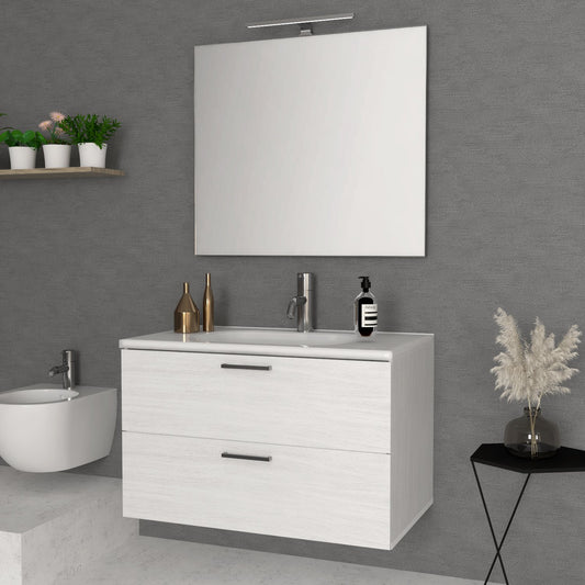 Mobile Bagno Sospeso 100 cm Olmo Bianco con Specchio con Lampada Led Alice - Savini