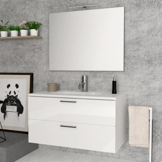 Mobile Bagno Sospeso 100 cm Bianco Lucido con Specchio con Lampada Led Alice - Savini
