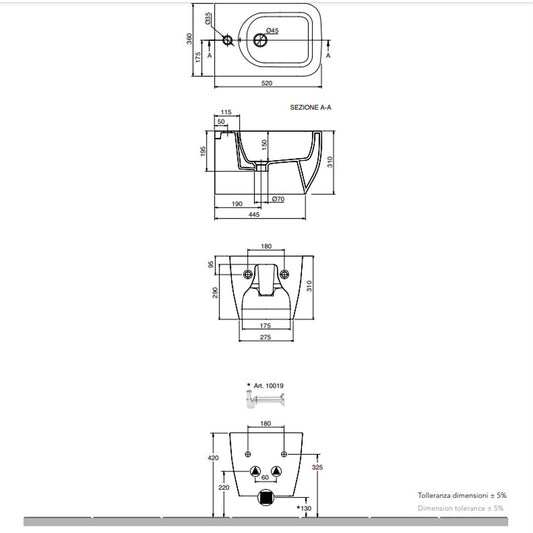 Bidet Sospeso Teorema 2.0 Bianco - Scarabeo Ceramiche