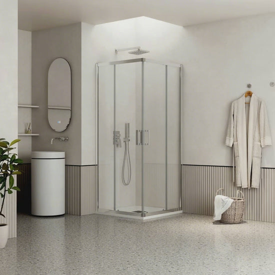 Box Doccia 100x120 cm Doppio Scorrevole Vetro Trasparente e Profilo Cromo - Escape di MedaHome Serie Escape. Questo box doccia con anta antigoccia - antigraffio e apertura doppio scorrevole in vetro temperato 6 mm mm con profilo alluminio colore cromo e finitura anta trasparente (dimensione 100x120, altezza 195 cm, estensibilità 97-99 cm | 117-119 cm) per valorizzare al meglio lo spazio doccia del tuo bagno. Il meccanismo sgancio rapido assicura scorrimento fluido e affidabile. Il kit di fissaggio incluso semplifica l'installazione. Non comprende: piatto doccia. -