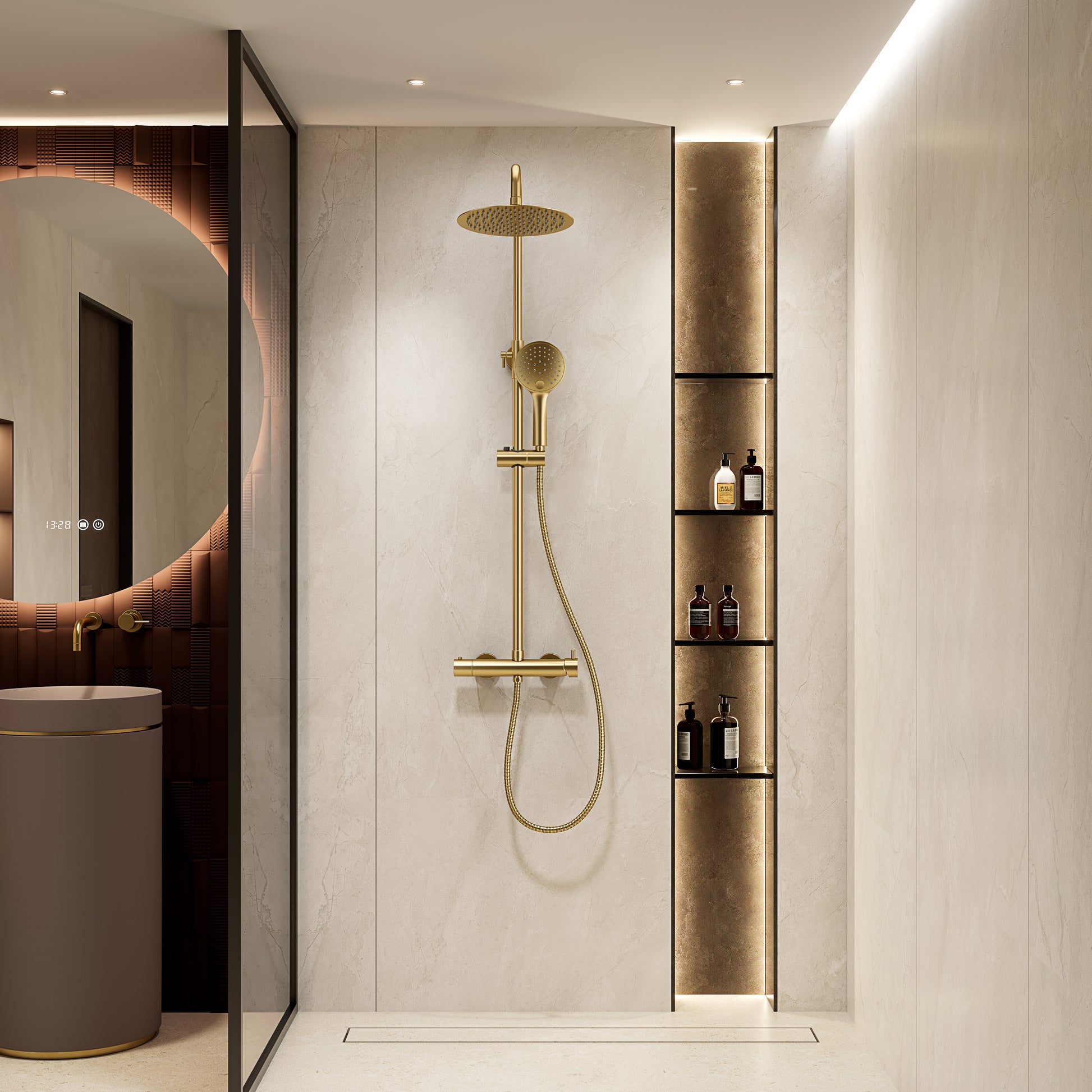 Colonna Doccia Termostatica con Doccino Oro Spazzolato - Luna