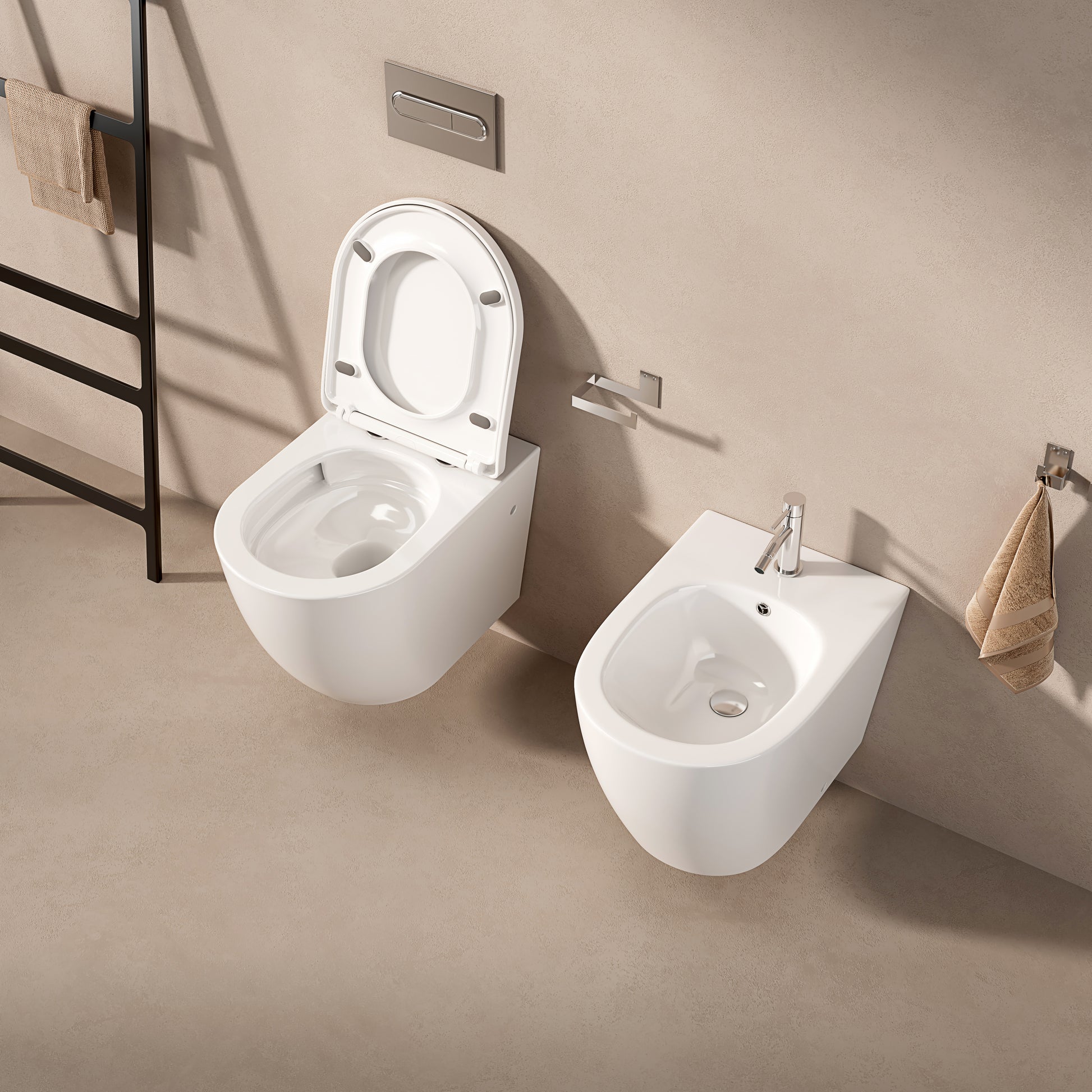 Coppia Sanitari Sospesi Giada 49 Senza Brida e Sedile Soft-Close Bianco Lucido - Meda