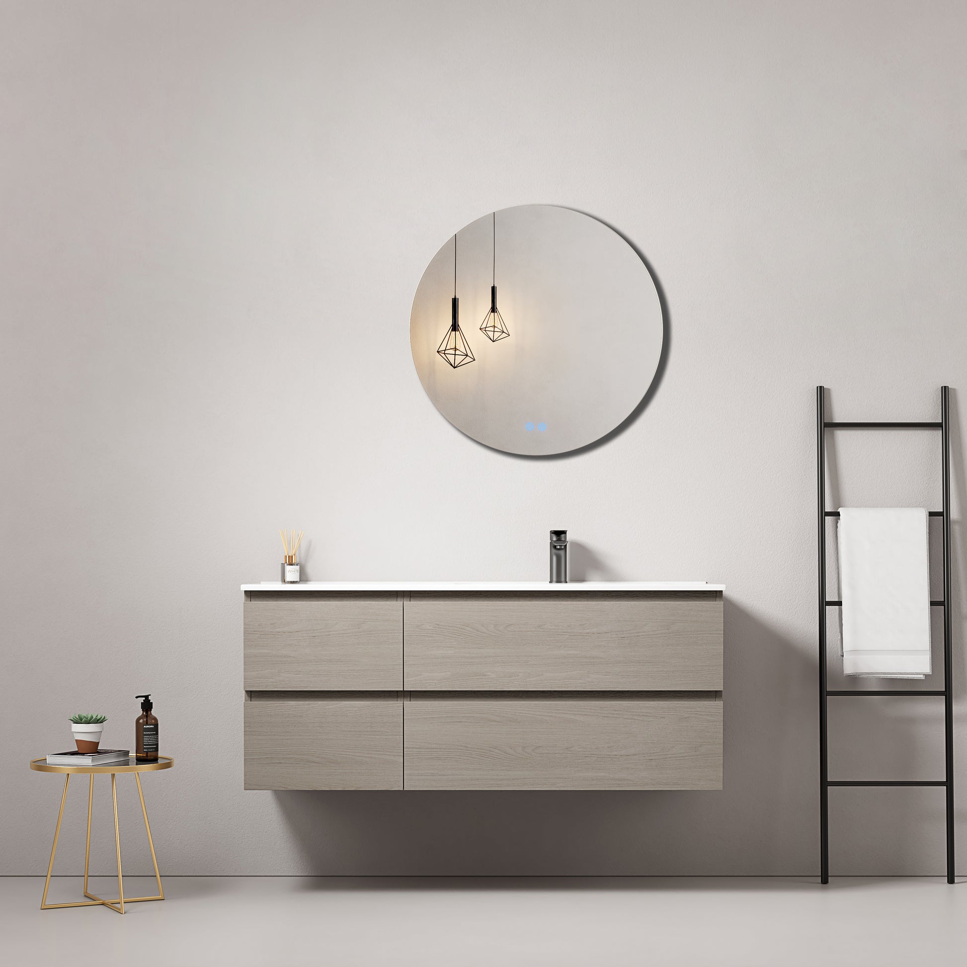 Mobile bagno sospeso 120 cm Beige Lavabo a Destra in Ceramica Specchio Tondo Retroilluminato - Fiji Wood
