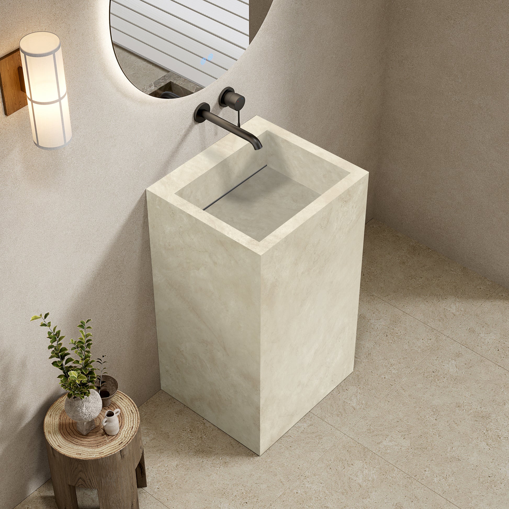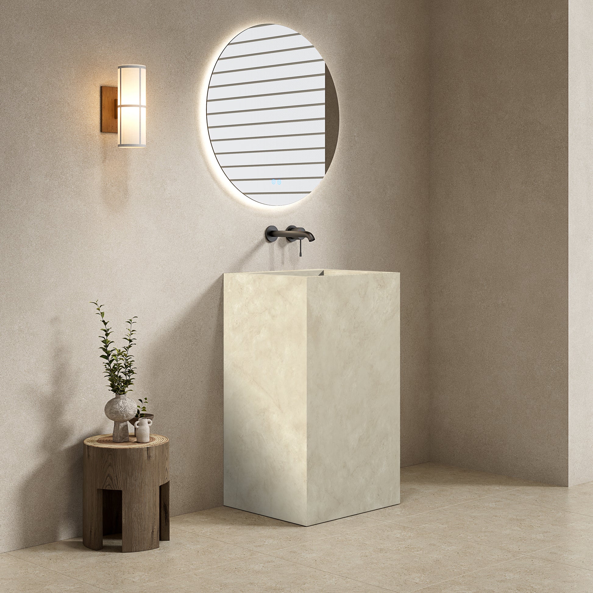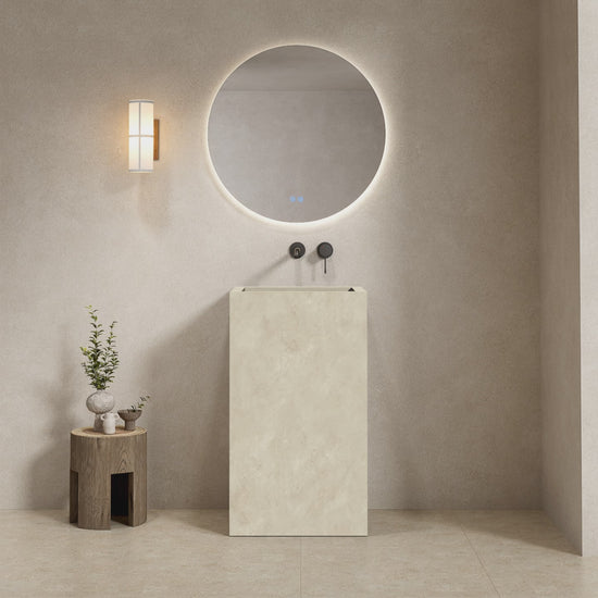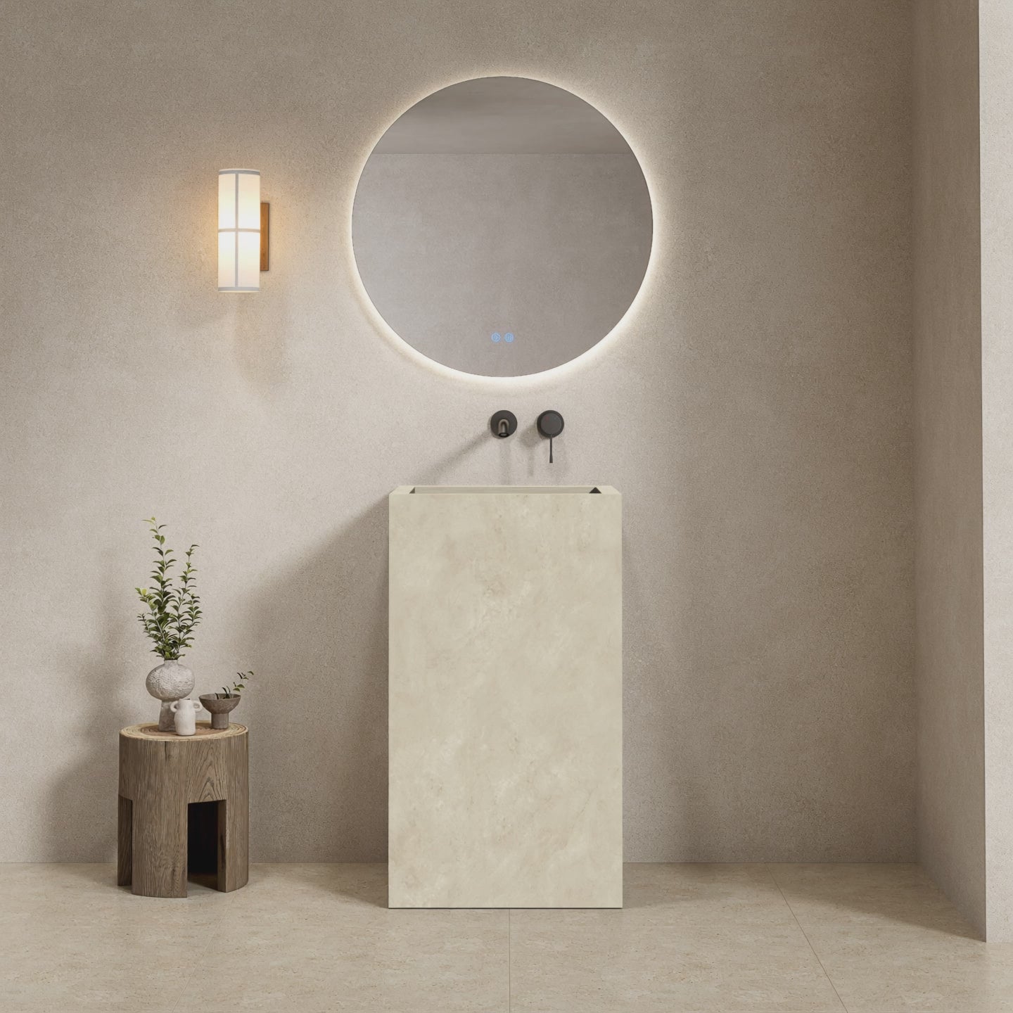 Lavabo Freestanding in Gres Lucido Crema Marfil 60 cm Specchio Tondo Retroilluminato - Pedestal