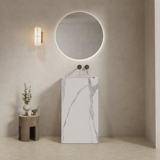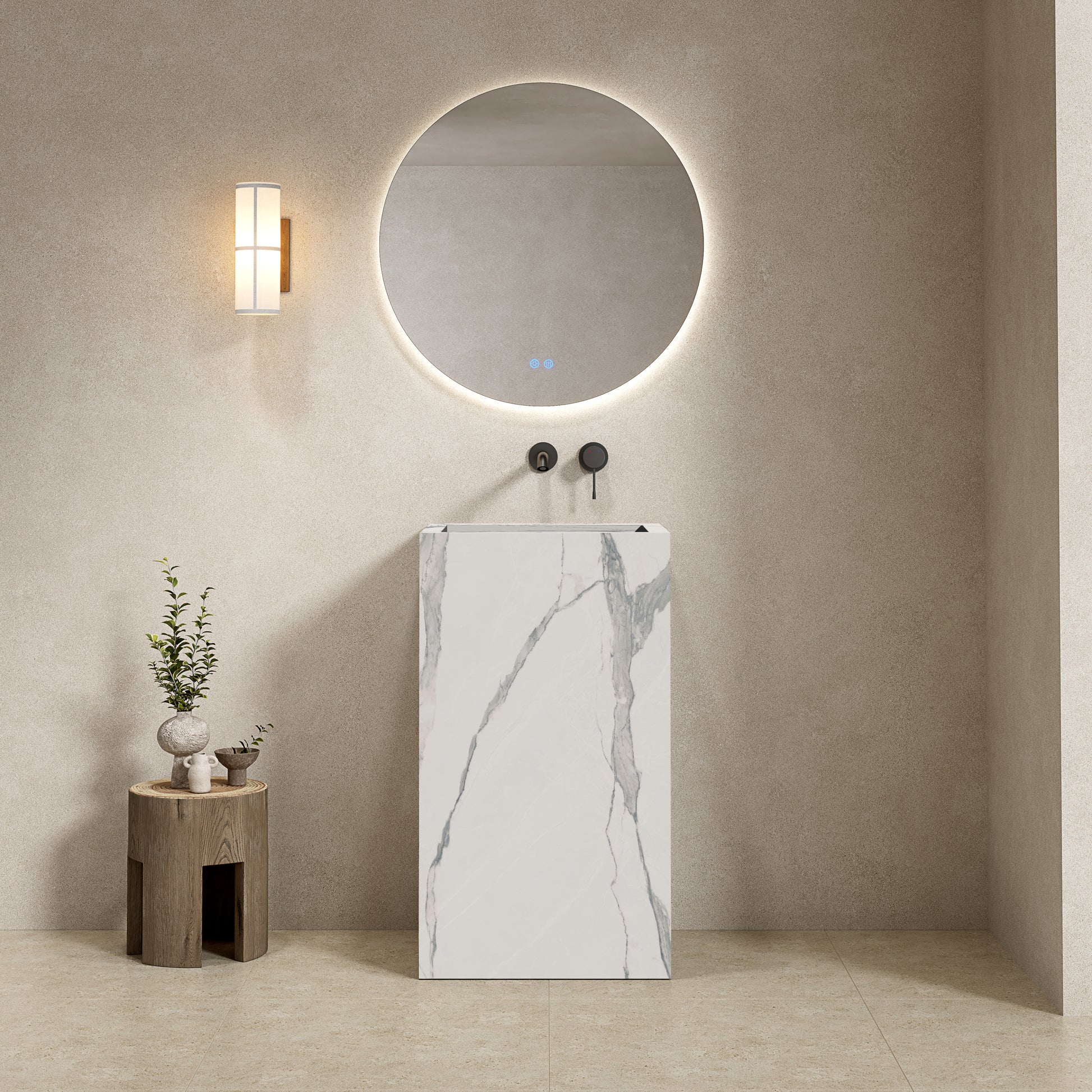 Lavabo Freestanding in Gres Opaco Carrara 60 cm Specchio Tondo Retroilluminato - Pedestal