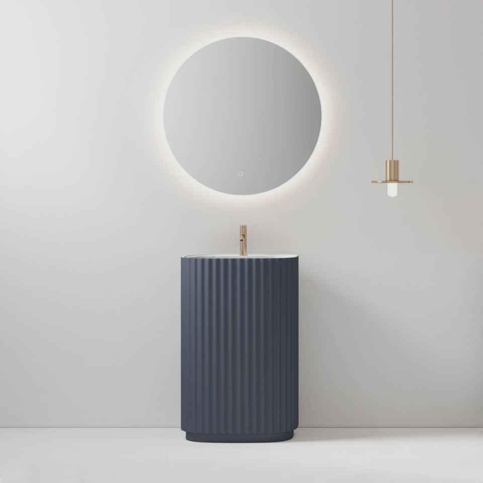 Lavabo Freestanding Reid 50 cm Blu Mare Specchio Tondo Retroilluminato - Meda