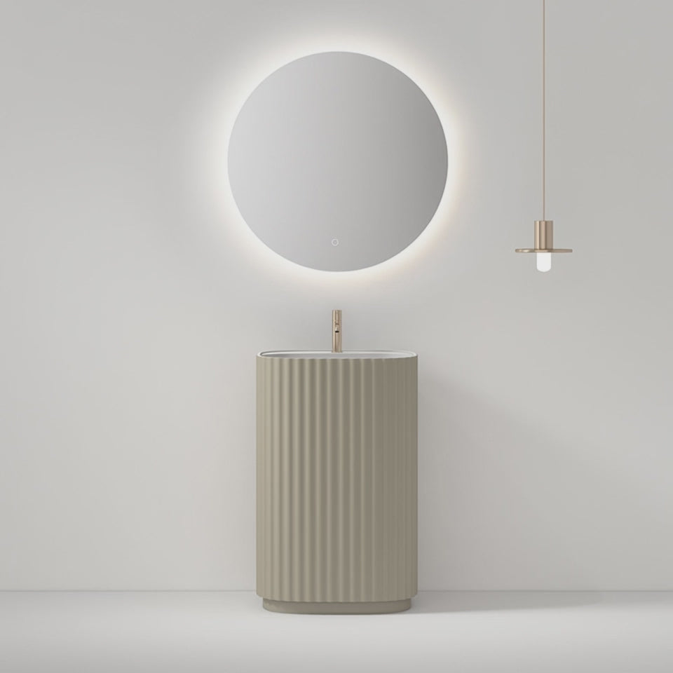 Lavabo Freestanding Reid 50 cm Tortora Specchio Tondo Retroilluminato - Meda