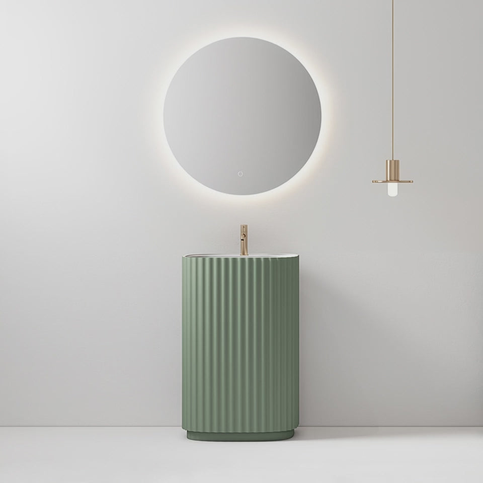 Lavabo Freestanding Reid 50 cm Verde Salvia Specchio Tondo Retroilluminato - Meda
