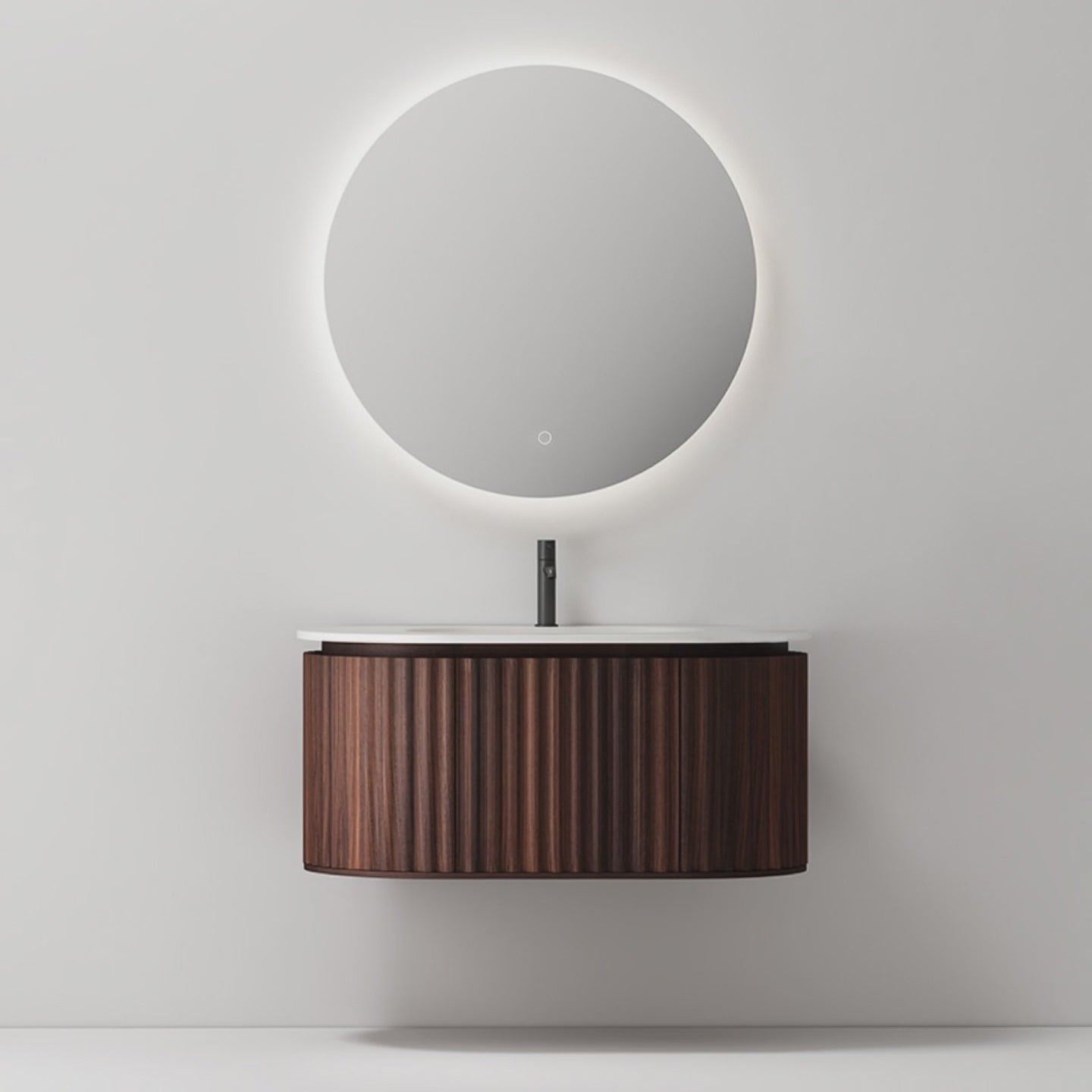 Mobile Bagno 100 cm Sospeso Noce Scuro Specchio Tondo - Reid