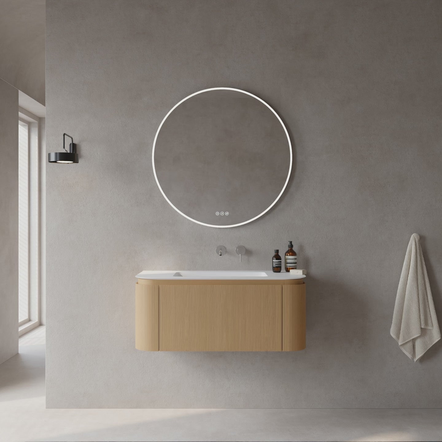 Mobile Bagno 100 cm Sospeso Rovere Chiaro Specchio Tondo Retroilluminato - Nooma