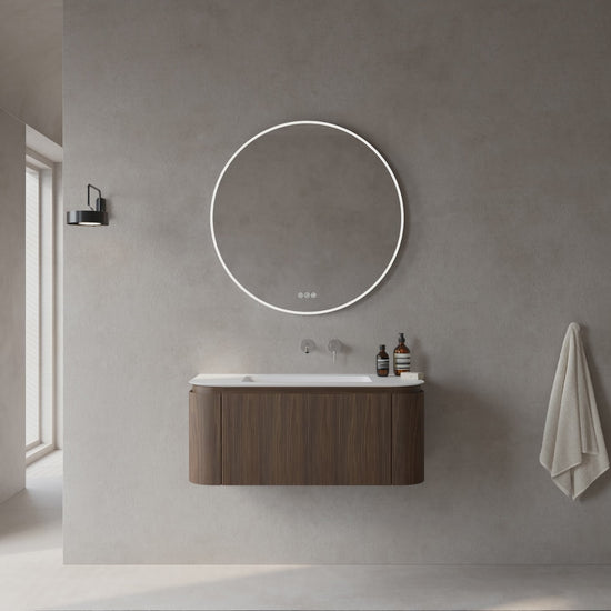 Mobile Bagno 100 cm Sospeso Rovere Medio Specchio Tondo Retroilluminato - Nooma