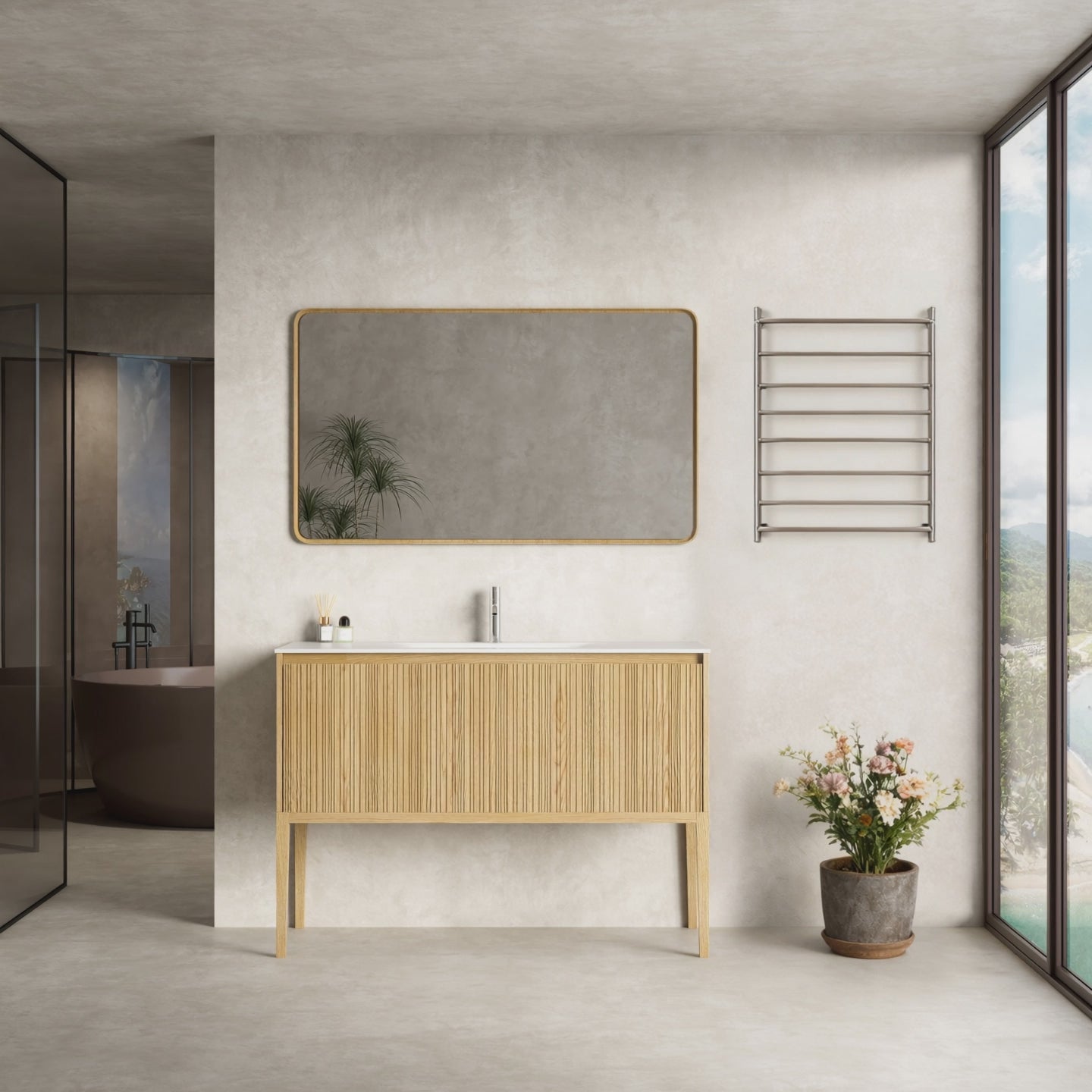 Mobile Bagno 120 cm A Terra Rovere Chiaro Specchio con Cornice - Pace