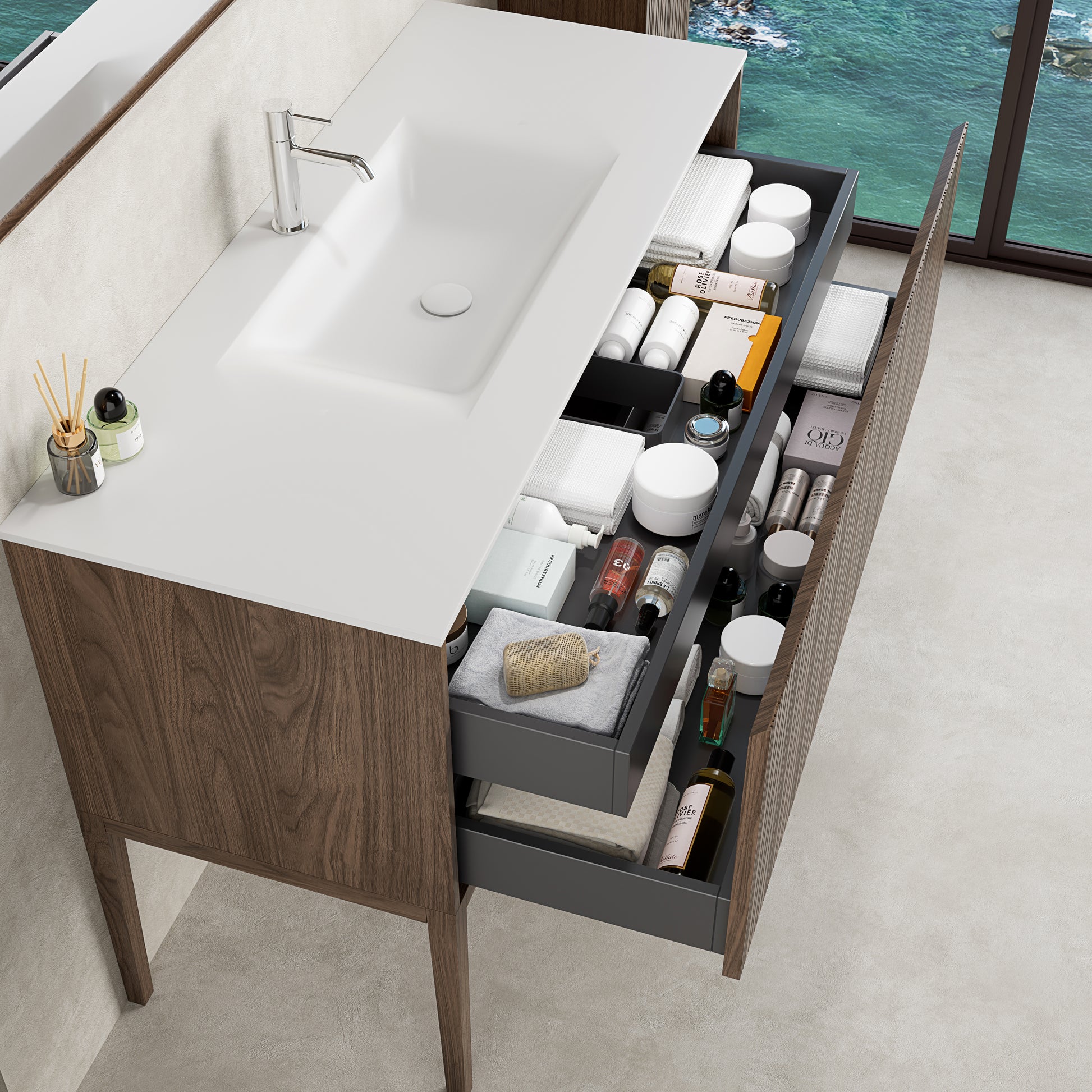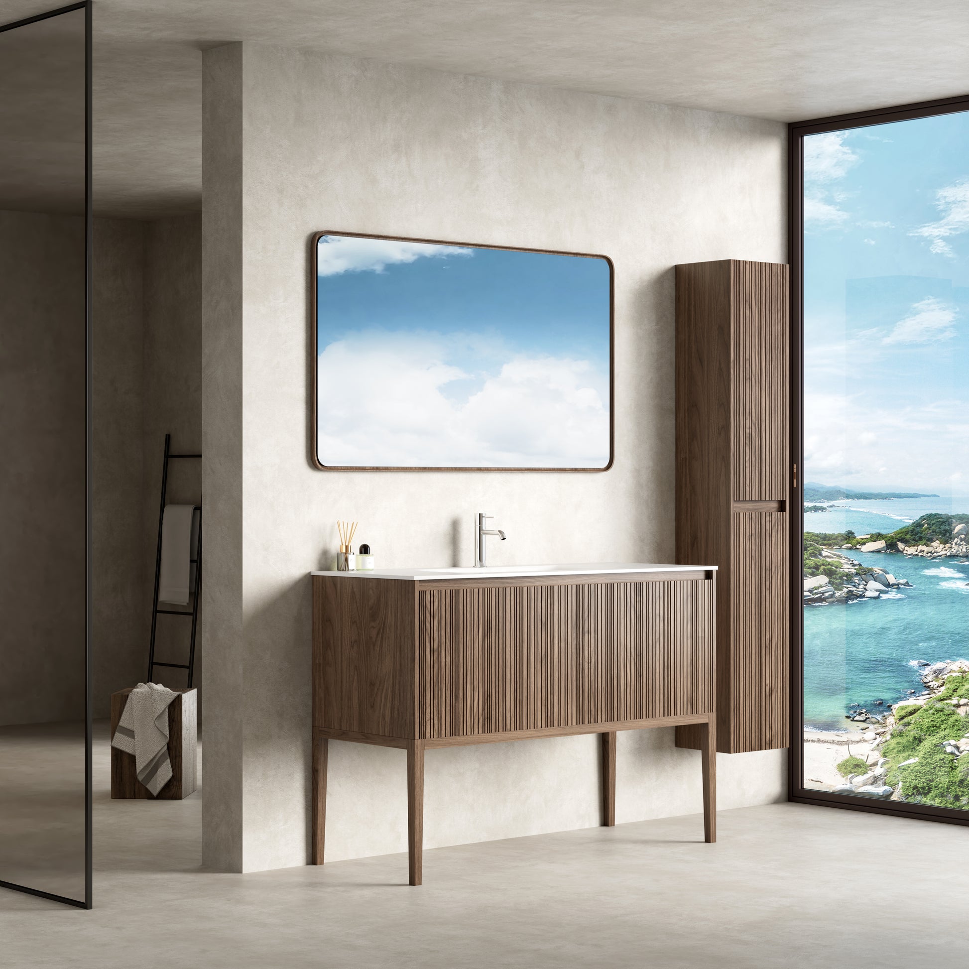 Mobile Bagno 120 cm A Terra Rovere Scuro Specchio con Cornice - Pace