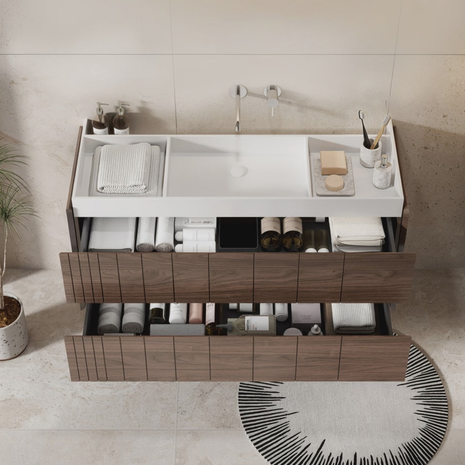 Mobile Bagno 120 cm Sospeso Rovere Scuro Senza Specchio - Roshi