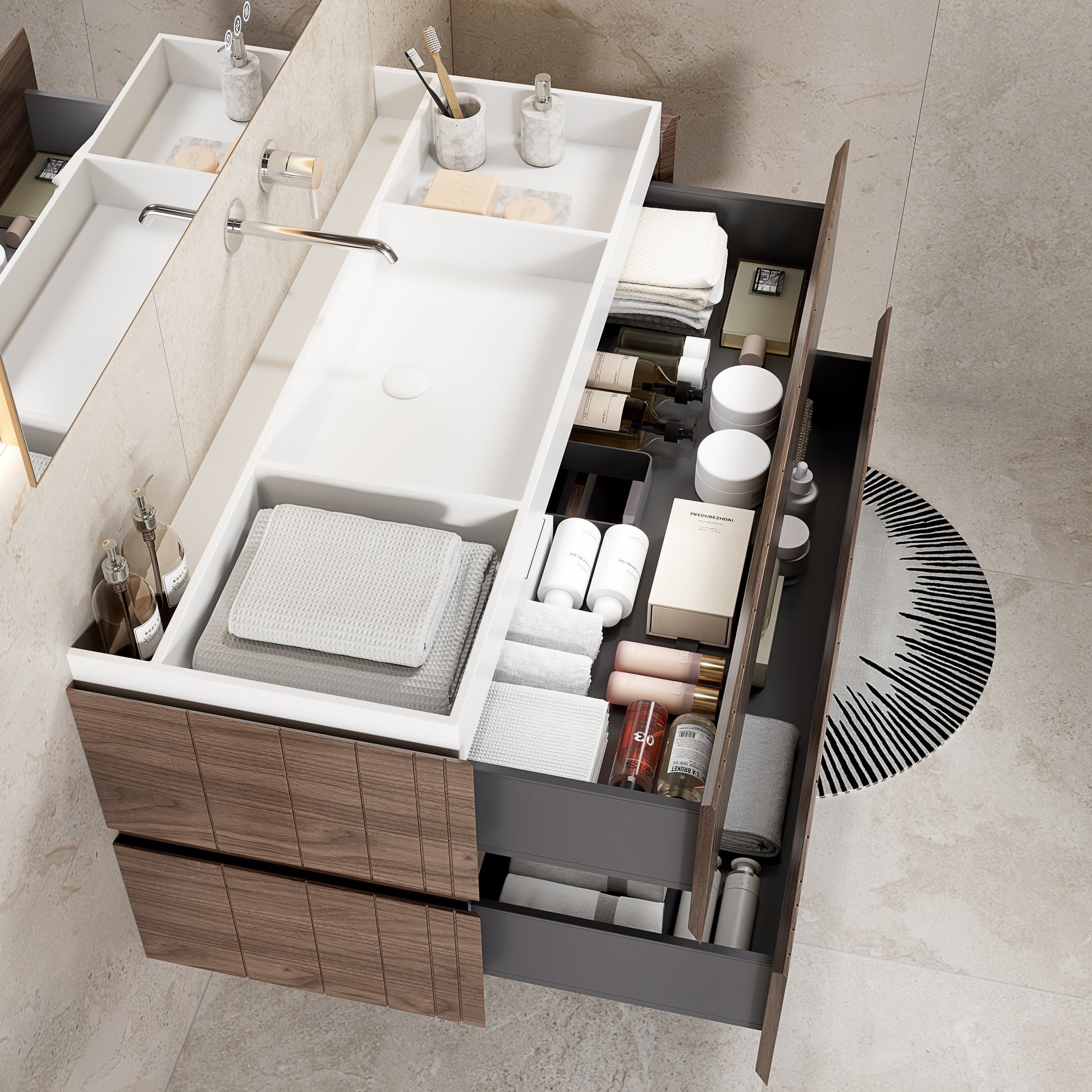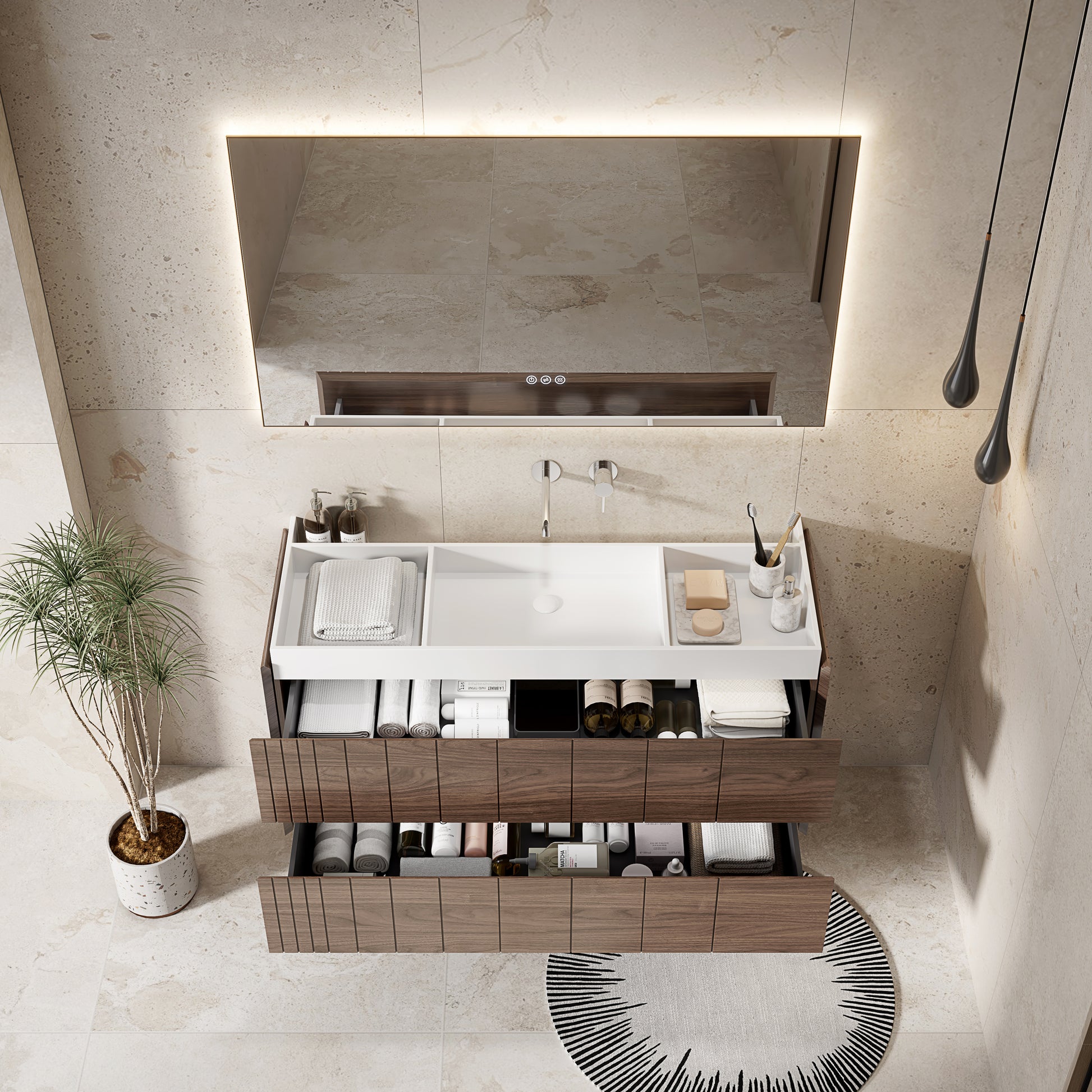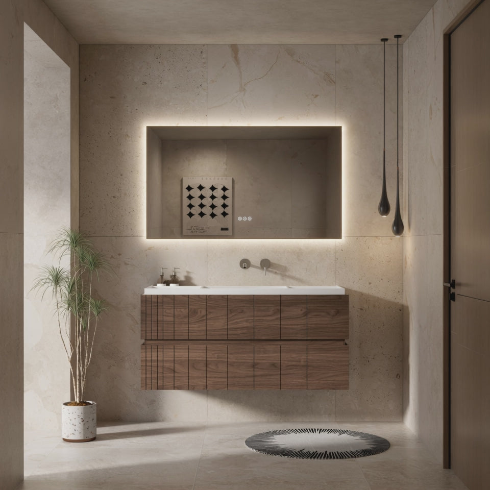 Mobile Bagno 120 cm Sospeso Rovere Scuro Specchio Retroilluminato - Roshi