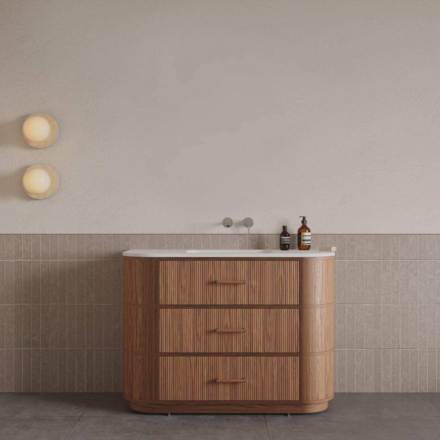 Mobile Bagno 120 cm A Terra Rovere Medio Senza Specchio - Naru