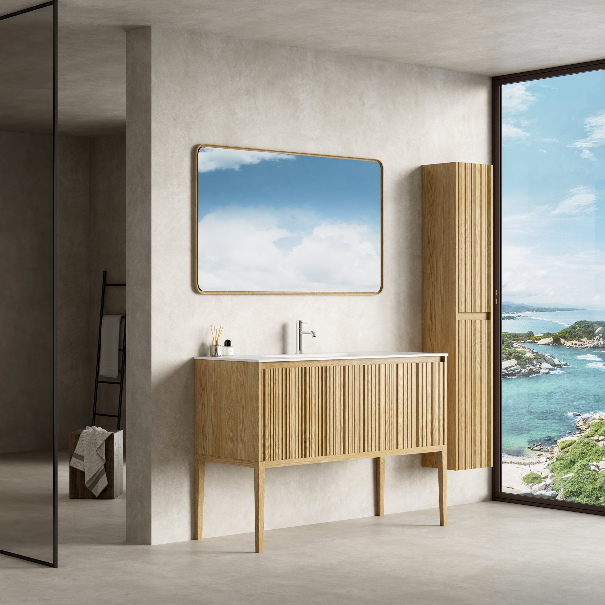 Mobile Bagno 120 cm A Terra Rovere Chiaro Specchio con Cornice - Pace