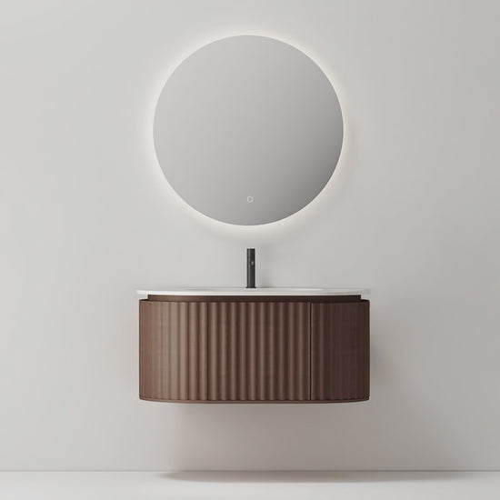 Mobile Bagno 100 cm Sospeso Rovere Scuro Specchio Tondo Retroilluminato - Reid