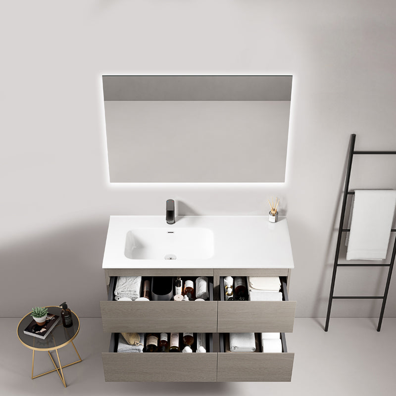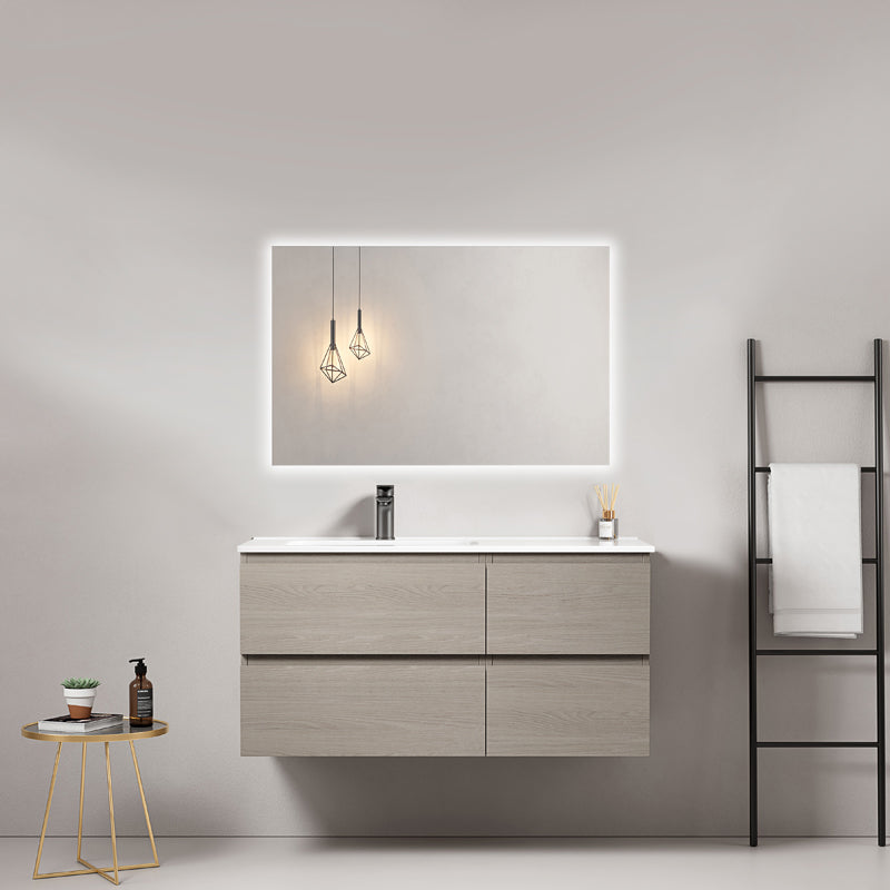 Mobile bagno sospeso 100 cm Beige Lavabo a Sinistra in Ceramica Specchio Quadro Retroilluminato - Fiji Wood