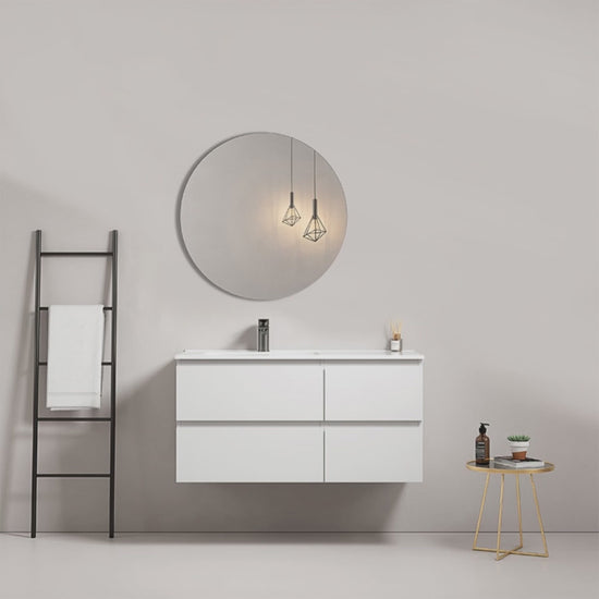 Mobile bagno sospeso 100 cm Bianco Lavabo a Sinistra in Ceramica Specchio Tondo - Fiji Paint