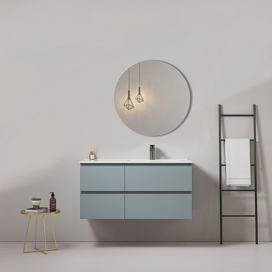 Mobile bagno sospeso 100 cm Blu Avio Lavabo a Destra in Ceramica Specchio Tondo - Fiji Paint