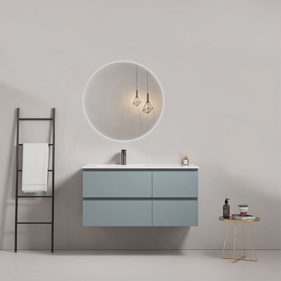 Mobile bagno sospeso 100 cm Blu Avio Lavabo a Sinistra in Ceramica Specchio Tondo Retroilluminato - Fiji Paint