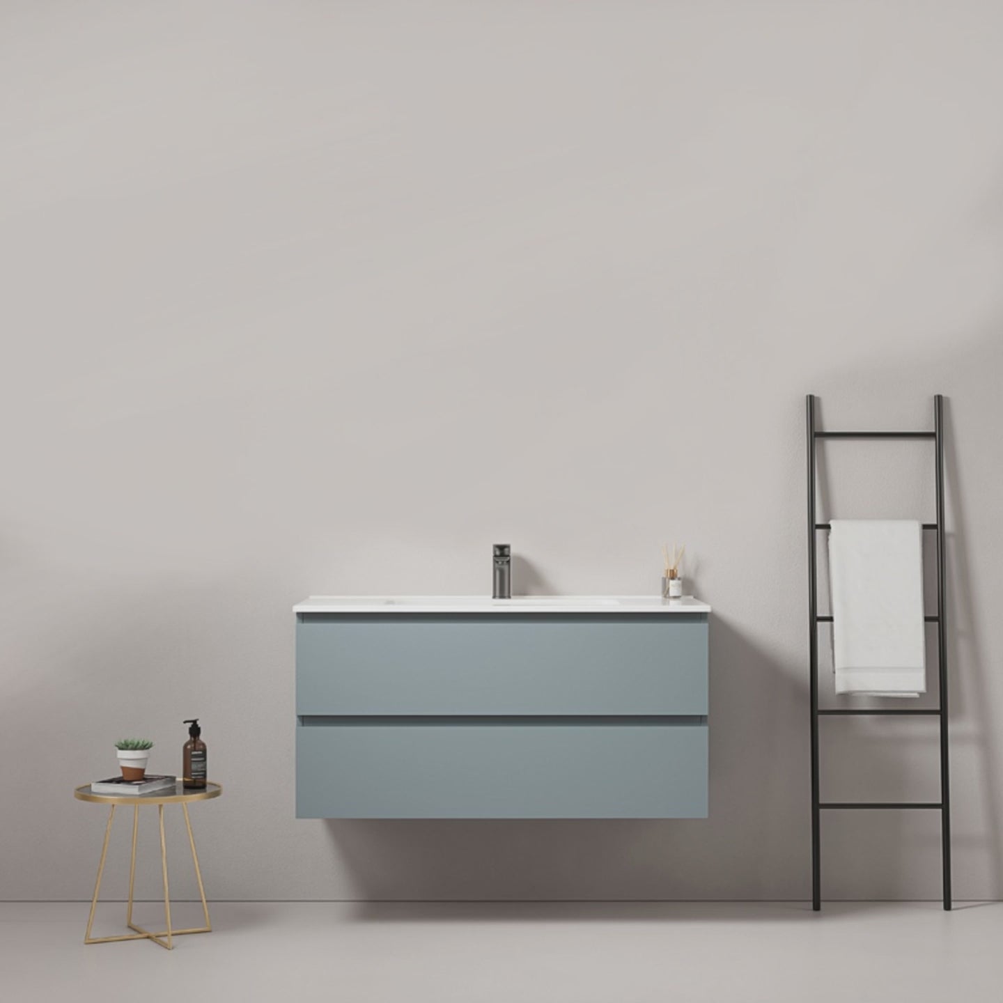 Mobile bagno sospeso 100 cm Blu Avio Lavabo in Ceramica Senza Specchio - Fiji Paint