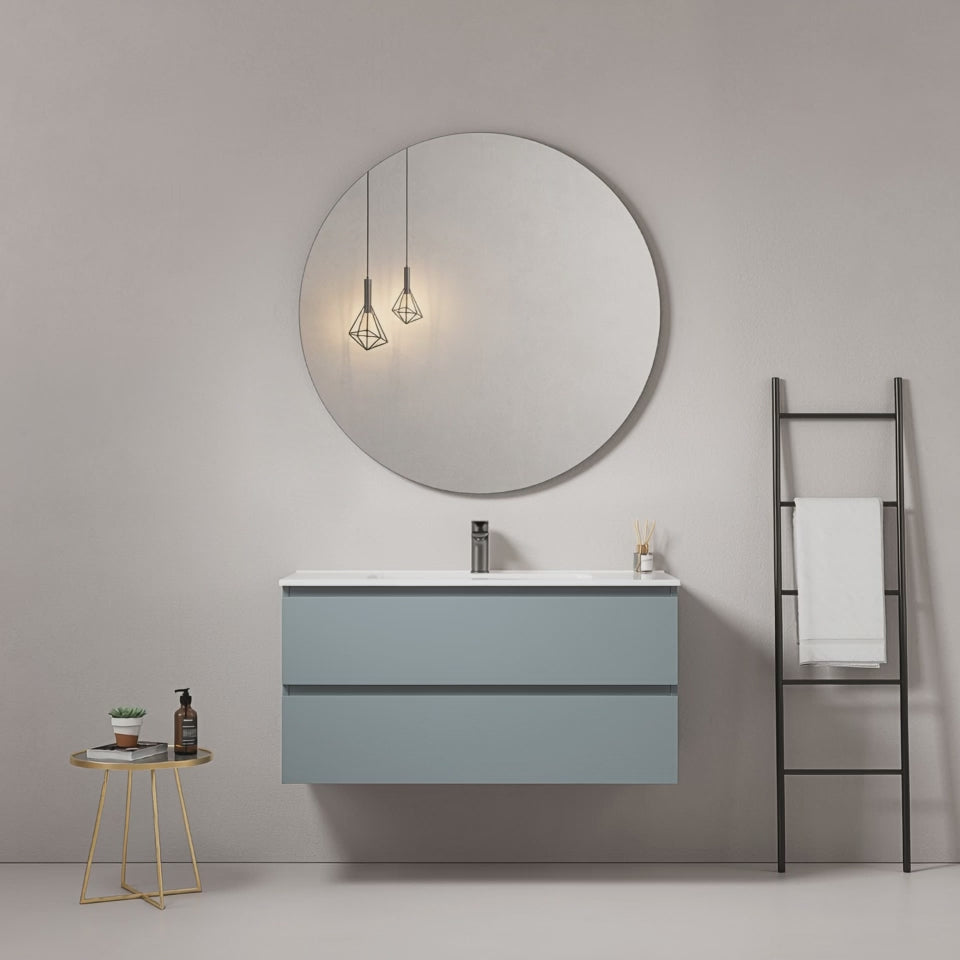Mobile bagno sospeso 100 cm Blu Avio Lavabo in Ceramica Specchio Tondo - Fiji Paint