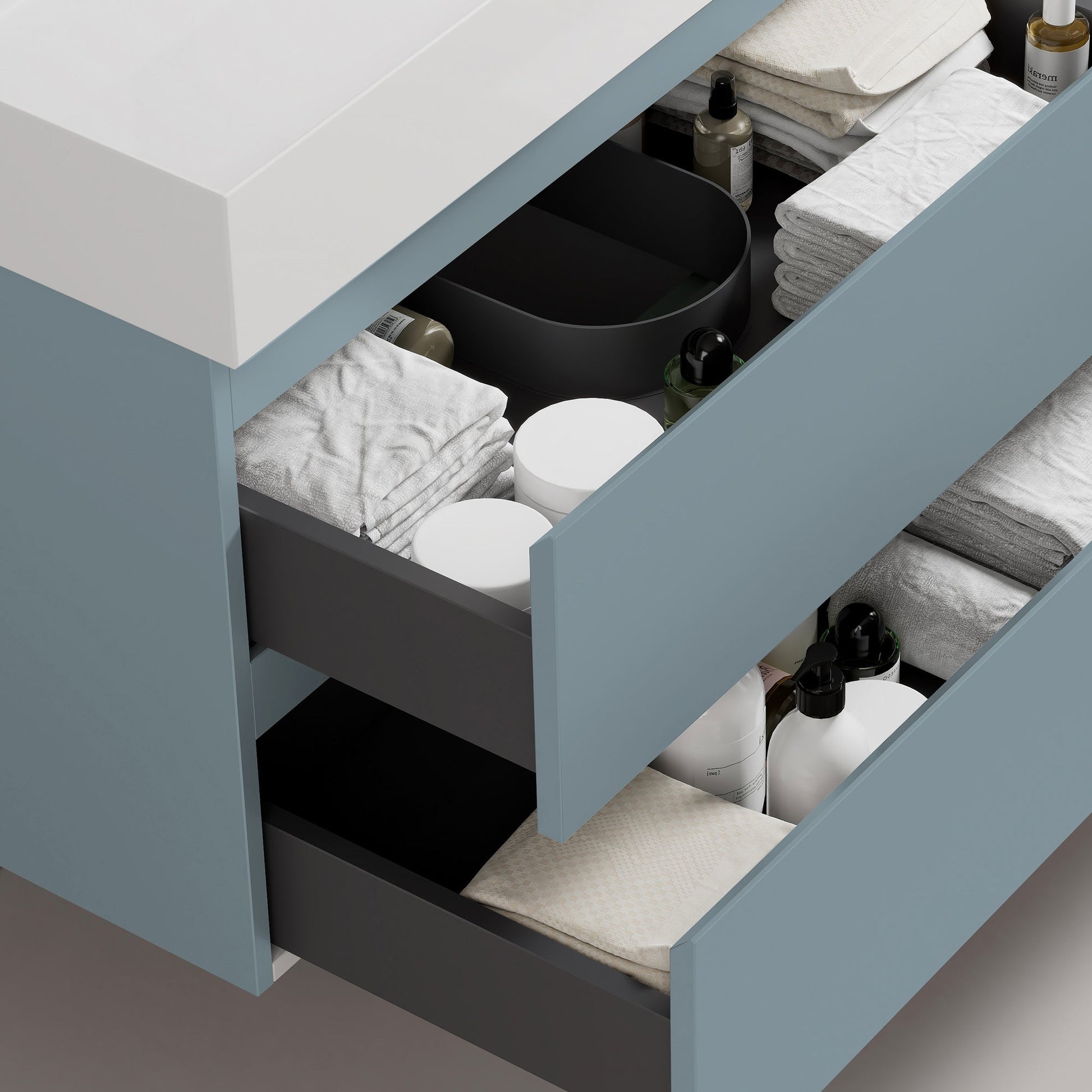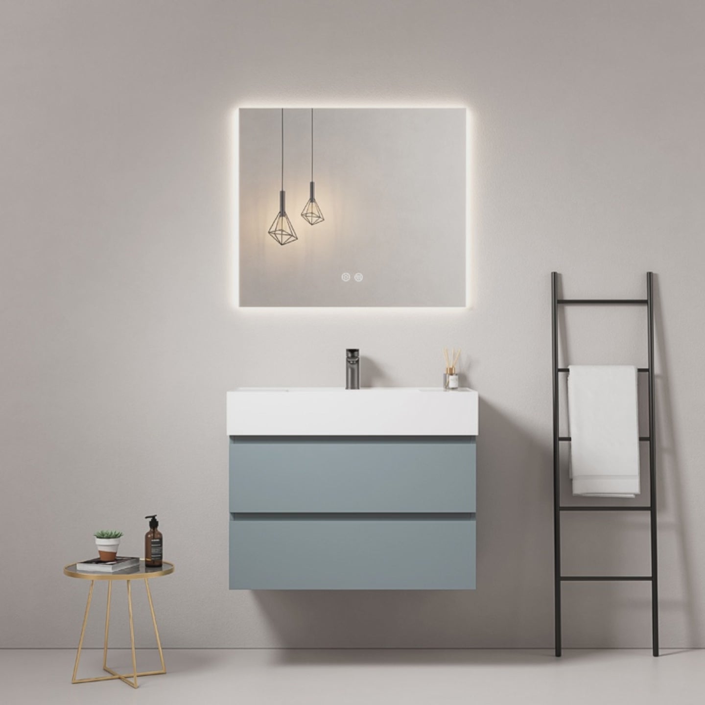 Mobile bagno sospeso 100 cm Blu Avio Lavabo in Resina Specchio Quadro Retroilluminato - Fiji Paint