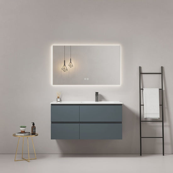 Mobile bagno sospeso 100 cm Blu Mare Lavabo a Destra in Ceramica Specchio Quadro Retroilluminato - Fiji Paint