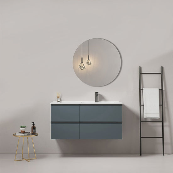 Mobile bagno sospeso 100 cm Blu Mare Lavabo a Destra in Ceramica Specchio Tondo - Fiji Paint