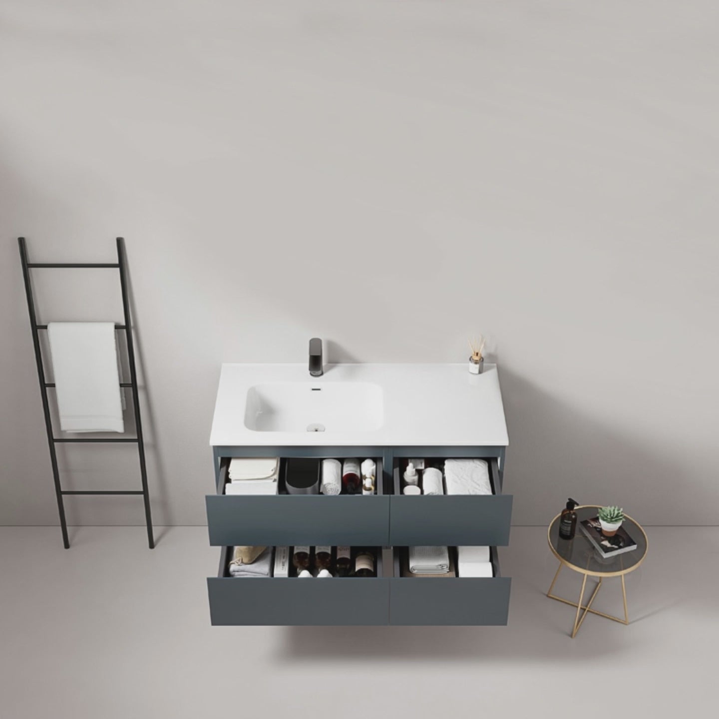 Mobile bagno sospeso 100 cm Blu Mare Lavabo a Sinistra in Ceramica Senza Specchio - Fiji Paint