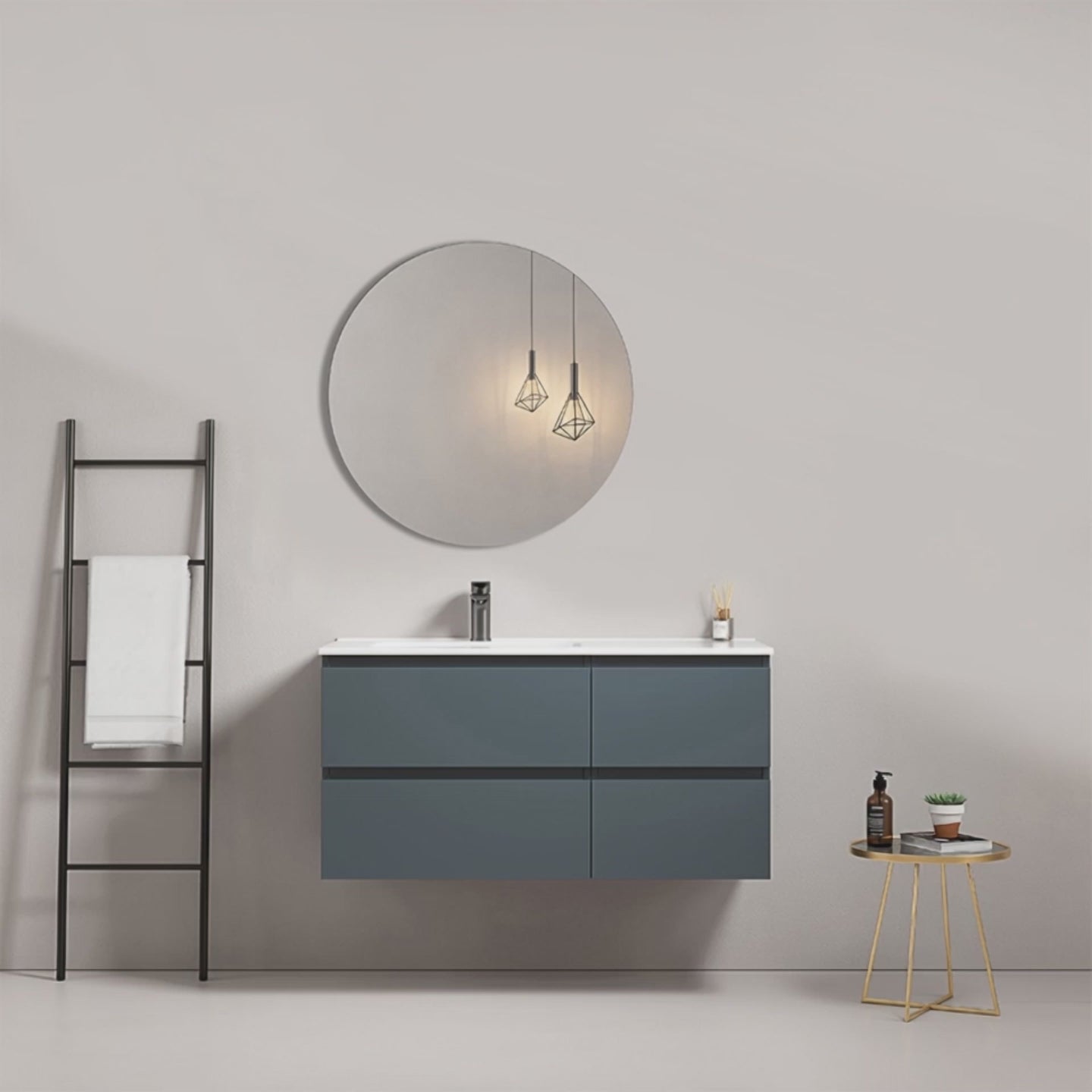 Mobile bagno sospeso 100 cm Blu Mare Lavabo a Sinistra in Ceramica Specchio Tondo - Fiji Paint