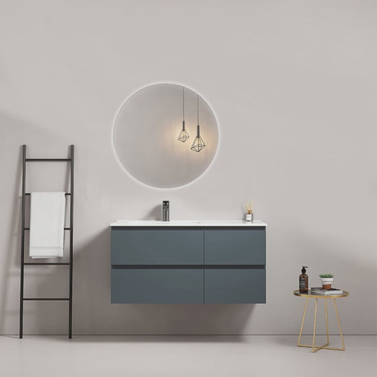 Mobile bagno sospeso 100 cm Blu Mare Lavabo a Sinistra in Ceramica Specchio Tondo Retroilluminato - Fiji Paint