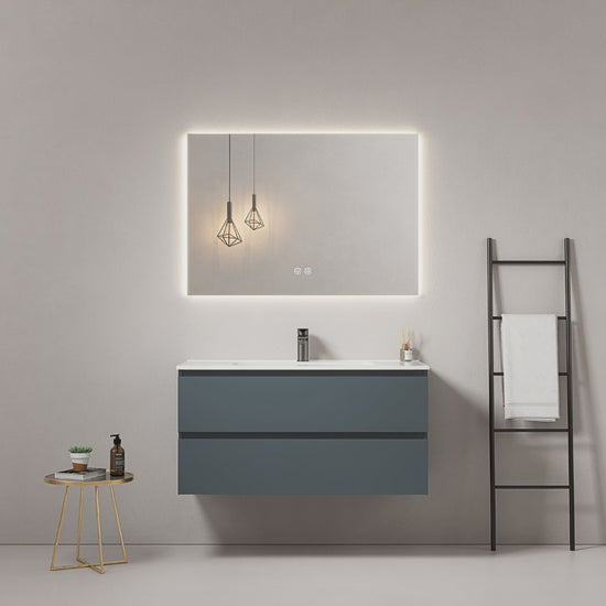 Mobile bagno sospeso 100 cm Blu Mare Lavabo in Ceramica Specchio Quadro Retroilluminato - Fiji Paint