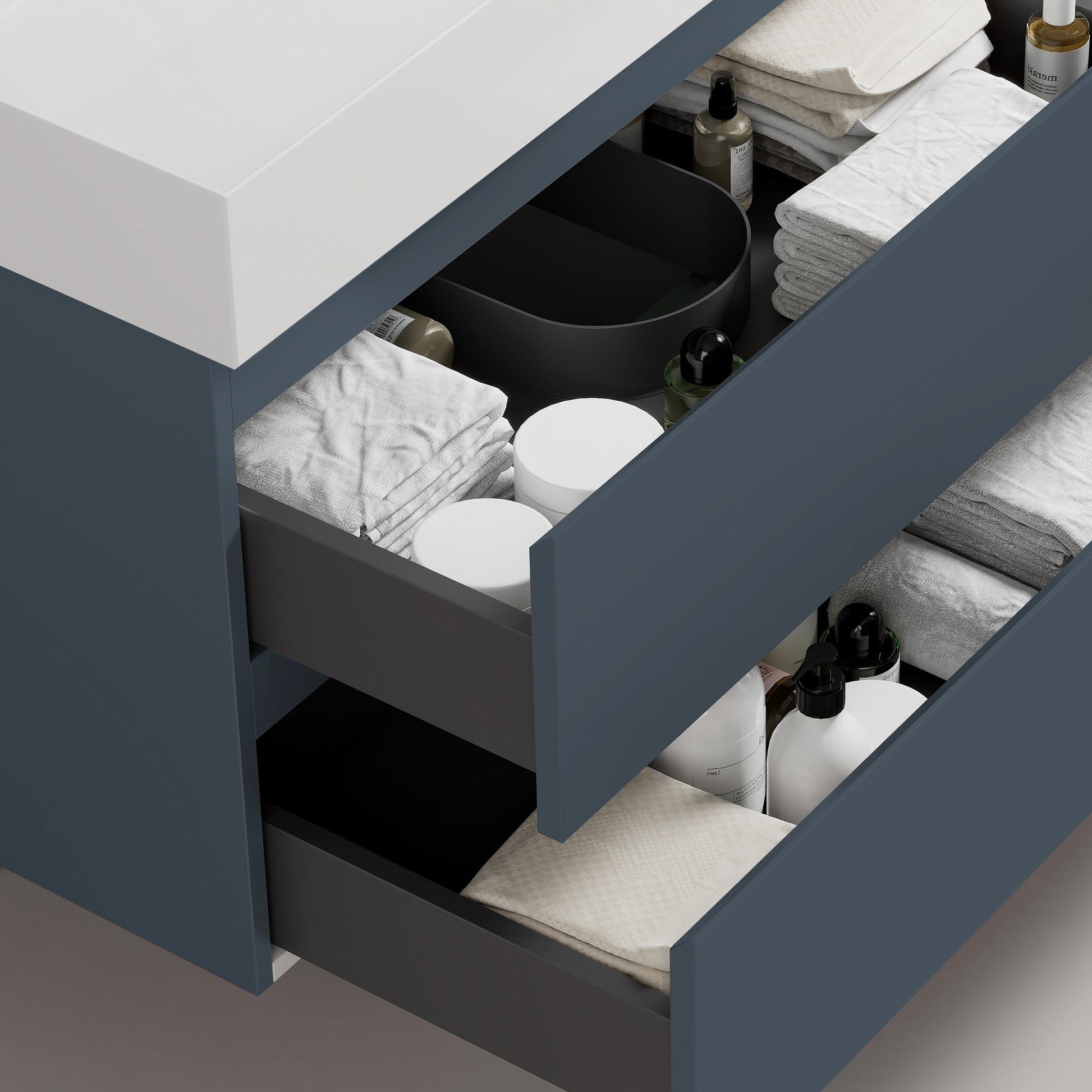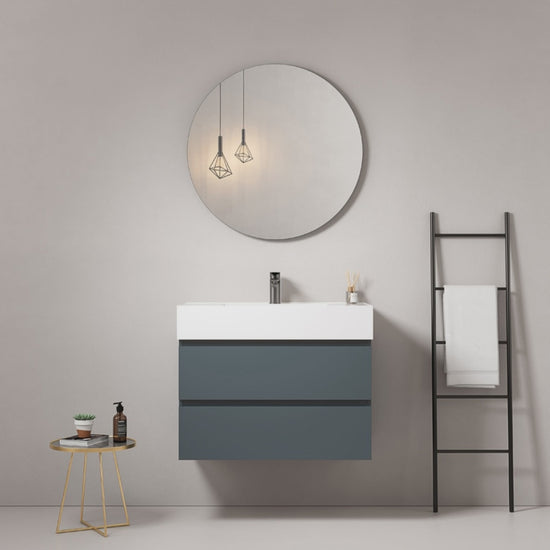 Mobile bagno sospeso 100 cm Blu Mare Lavabo in Resina Specchio Tondo - Fiji Paint