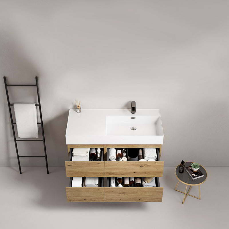 Mobile bagno sospeso 100 cm Bruno Medio Lavabo a Destra in Resina Senza Specchio - Fiji Wood