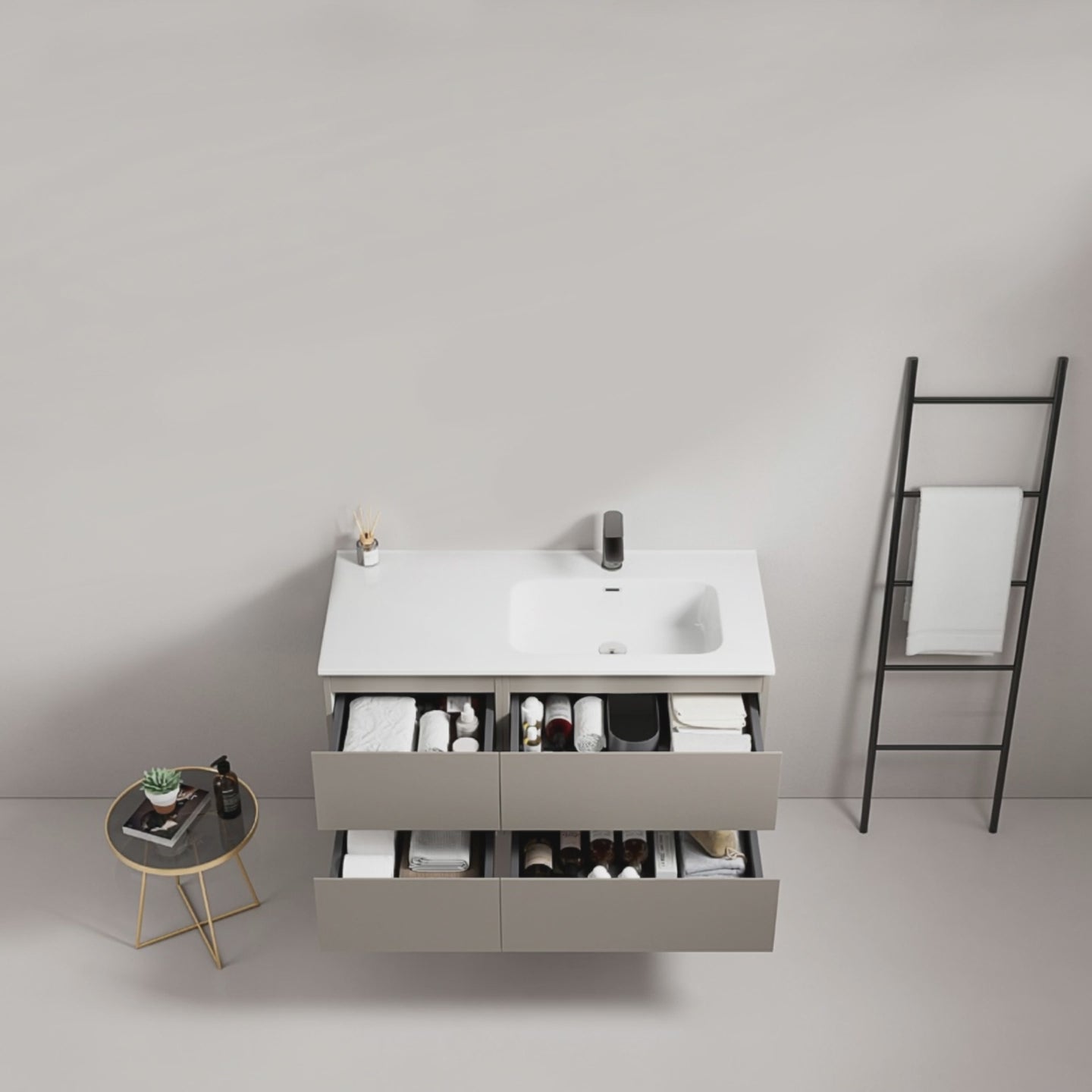 Mobile bagno sospeso 100 cm Grigio Cenere Lavabo a Destra in Ceramica Senza Specchio - Fiji Paint