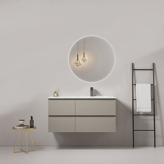 Mobile bagno sospeso 100 cm Grigio Cenere Lavabo a Destra in Ceramica Specchio Tondo Retroilluminato - Fiji Paint