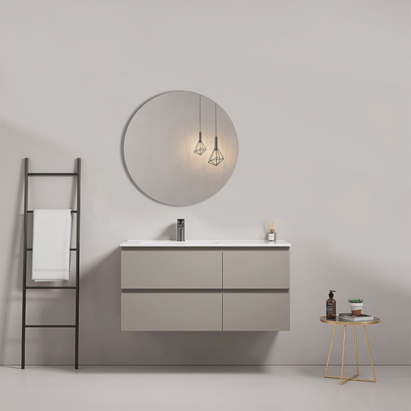Mobile bagno sospeso 100 cm Grigio Cenere Lavabo a Sinistra in Ceramica Specchio Tondo - Fiji Paint