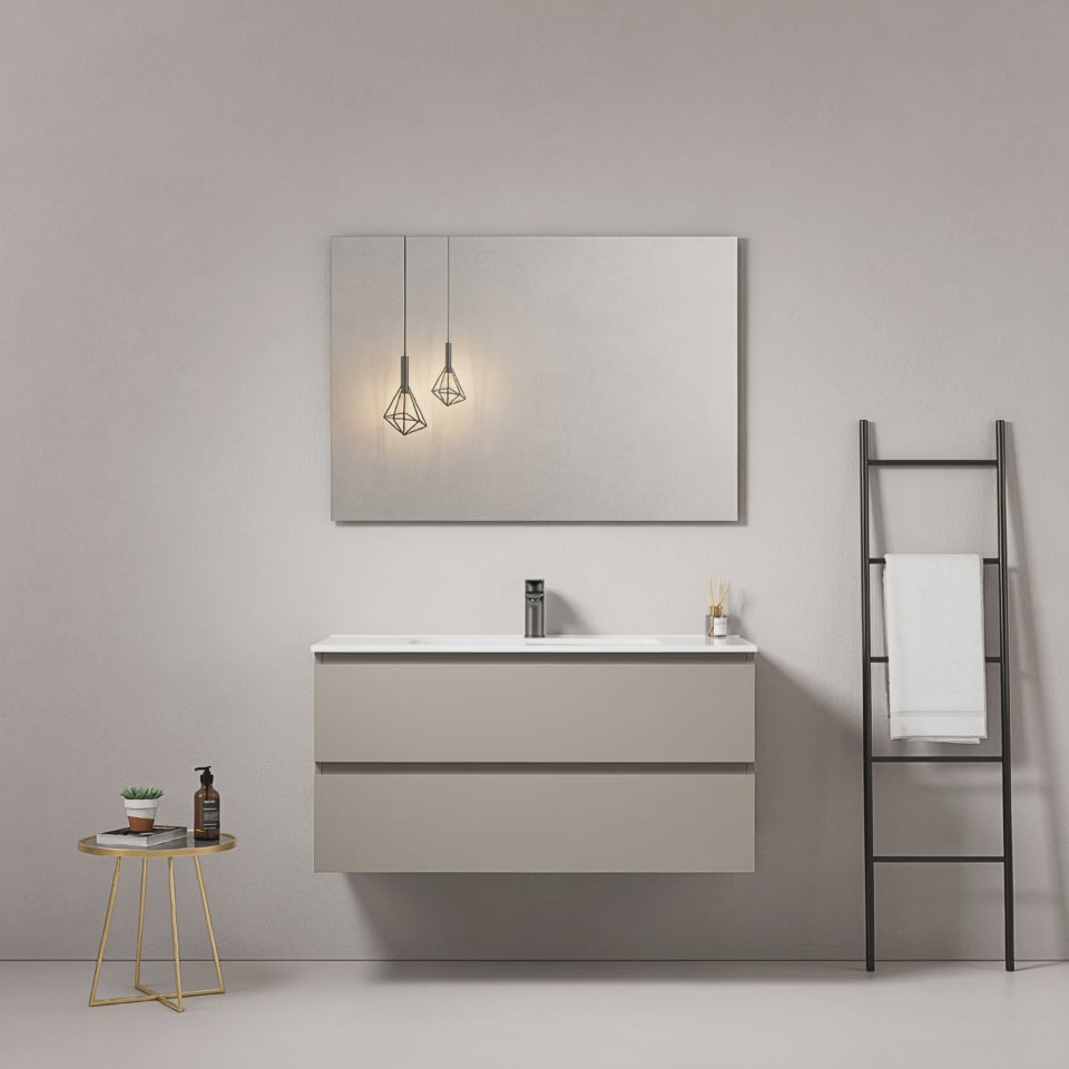Mobile bagno sospeso 100 cm Grigio Cenere Lavabo in Ceramica Specchio Quadro - Fiji Paint