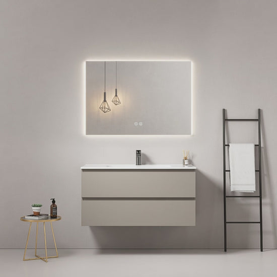 Mobile bagno sospeso 100 cm Grigio Cenere Lavabo in Ceramica Specchio Quadro Retroilluminato - Fiji Paint
